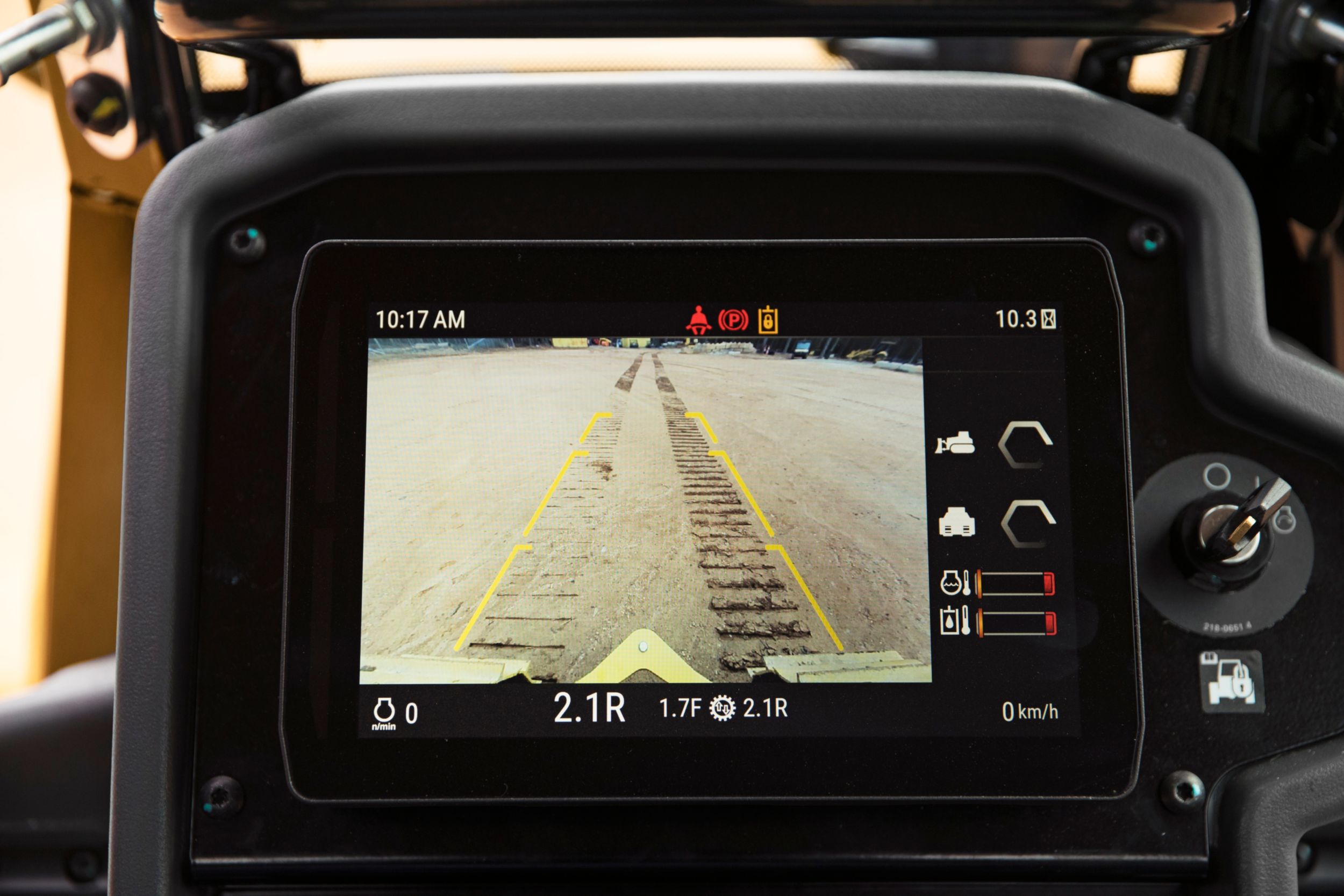 - This new and improved optional 10 in (254 mm) touchscreen, color display is easy to use, with a great view of machine settings, rearview camera and Slope Indicate/Slope Assist screens. The large reversing camera gives the operator better visibility to the job site.