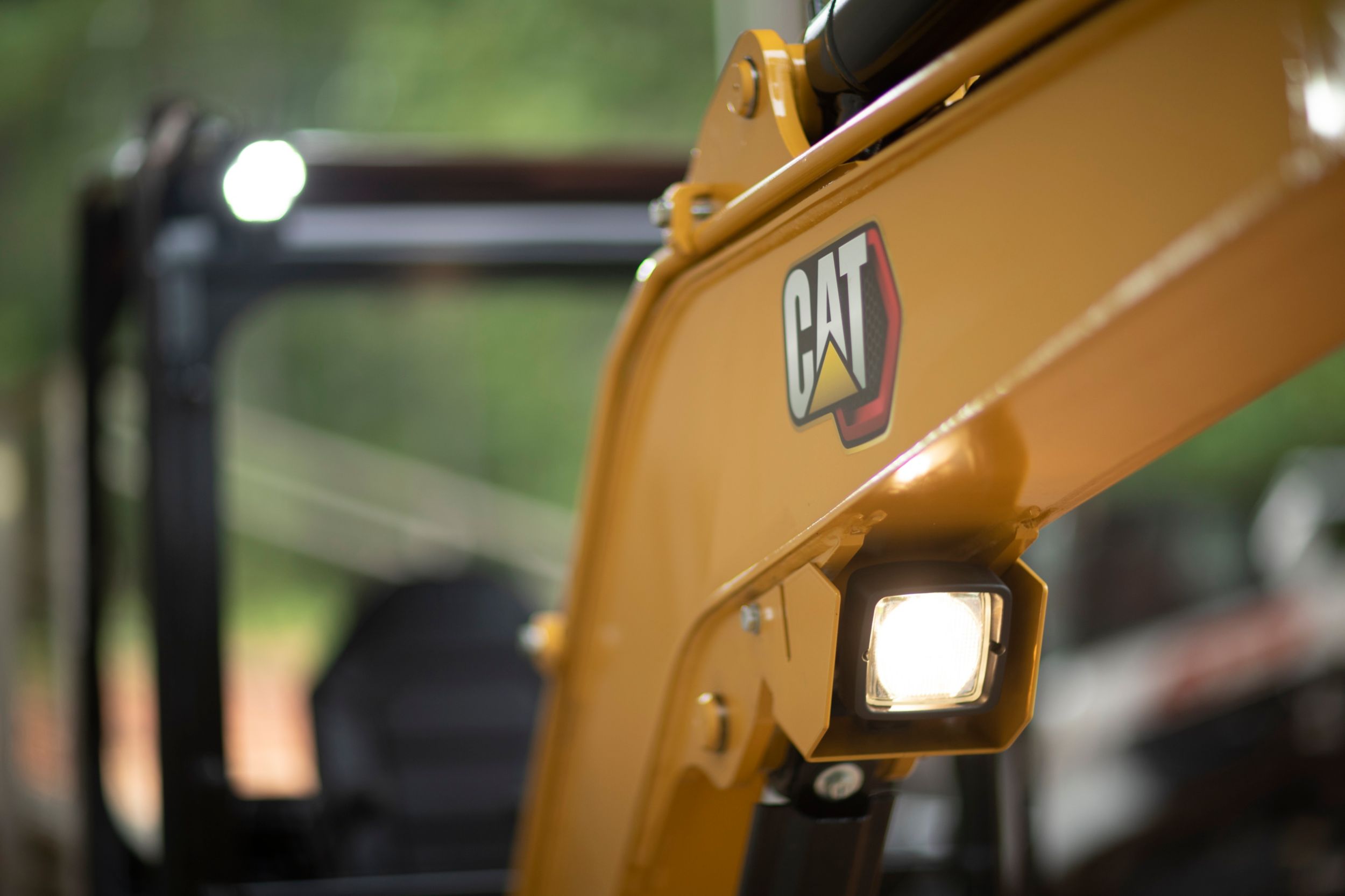 - Your safety is our top priority. The Cat mini excavator is designed to help keep you safe on the job. Courtesy work lights and a fluorescent retractable seat belt are just a couple of the safety features we’ve built into the machine.