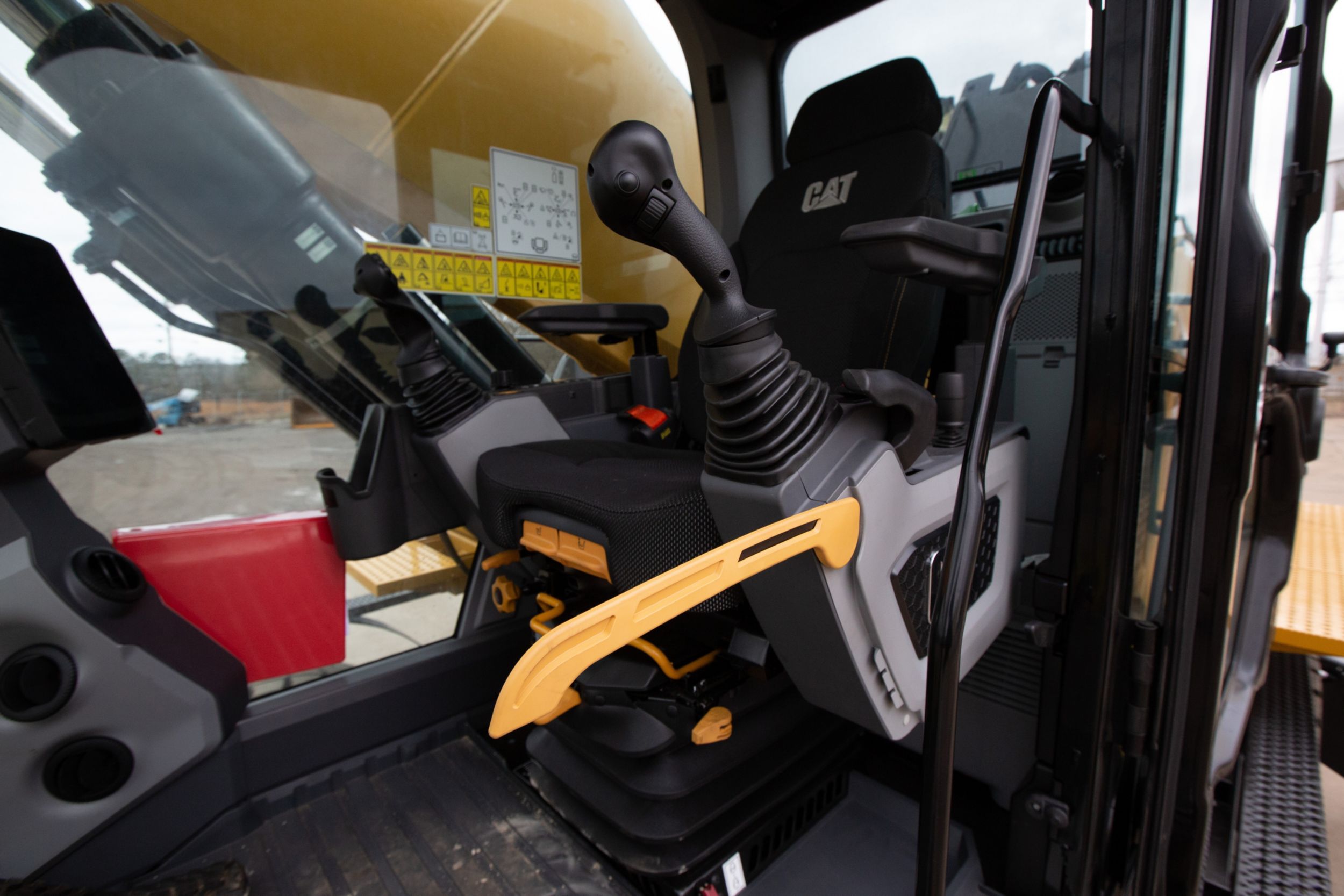 - The cab has a wide seat that adjusts for operators of all sizes.