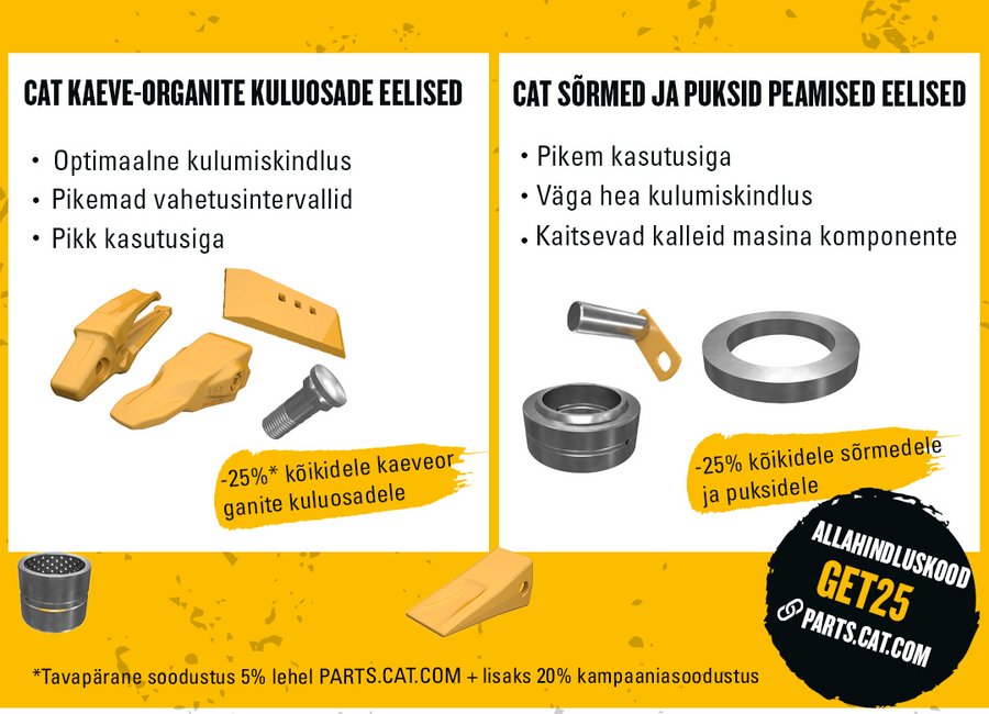 Soodustused valitud Cat originaalvaruosadele - KAEVEORGANITE KULUOSAD, SÕRMED JA PUKSID!
