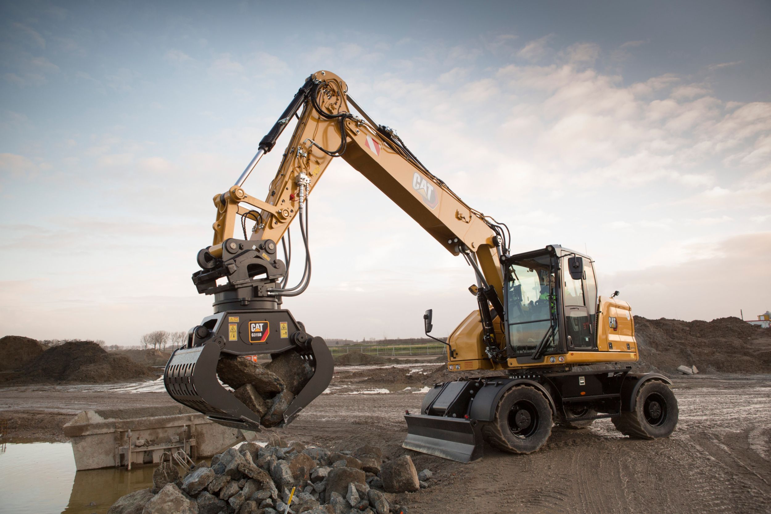 - Optional Cat Payload helps you achieve precise load targets to improve your operating efficiency. Pick up a load of material – with a bucket and thumb combination or grapple and clamshell attachments – and get a real-time weight estimate without swinging.