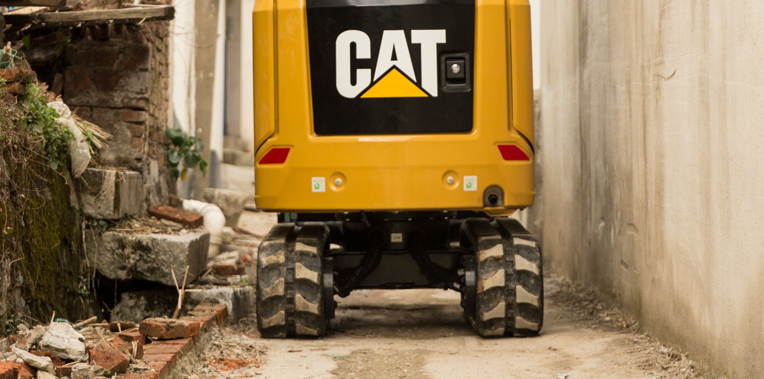 - Your safety is our top priority. The Cat mini excavator is designed to help keep you safe on the job. Courtesy work lights and a fluorescent retractable seat belt are just a couple of the safety features we’ve built into the machine.
