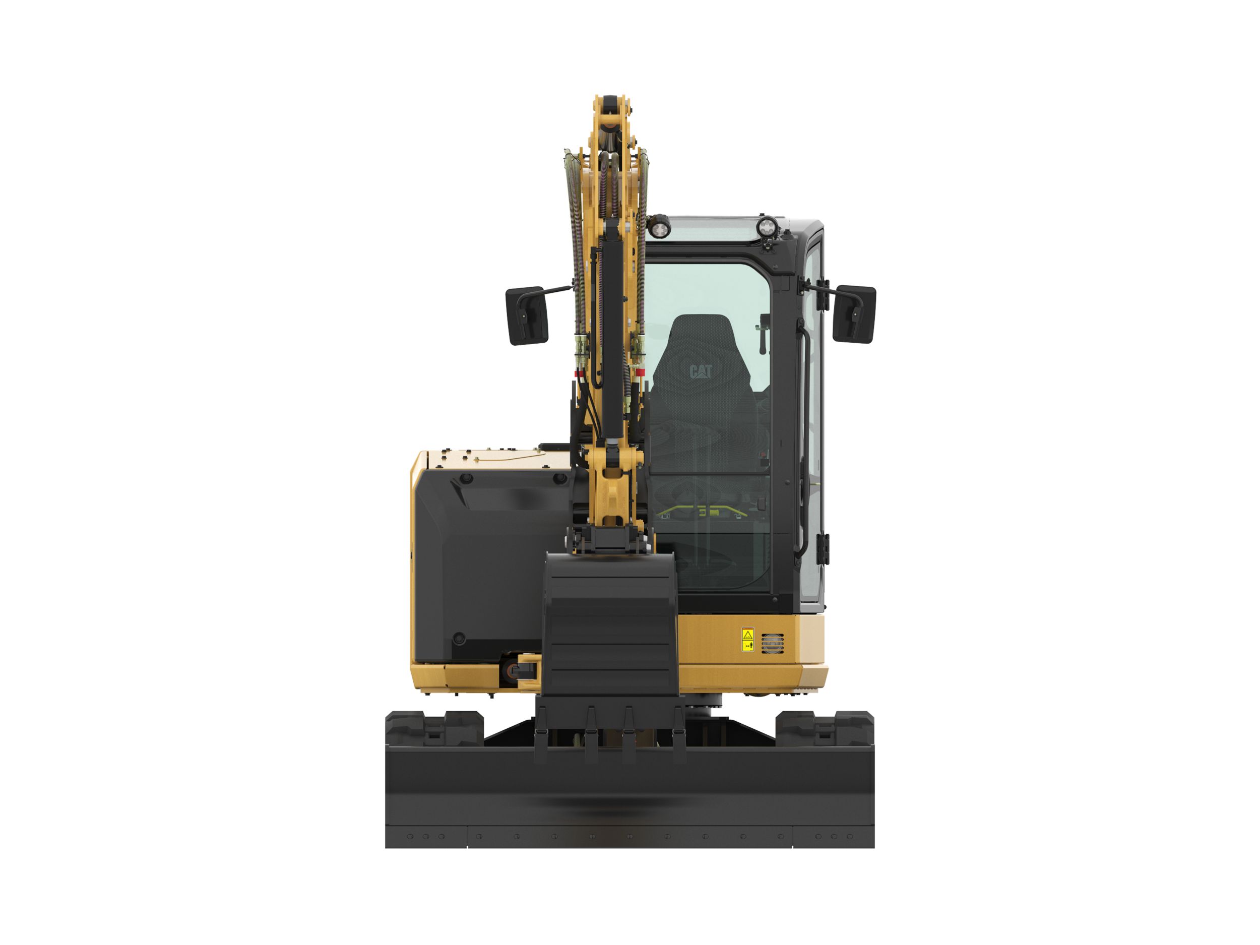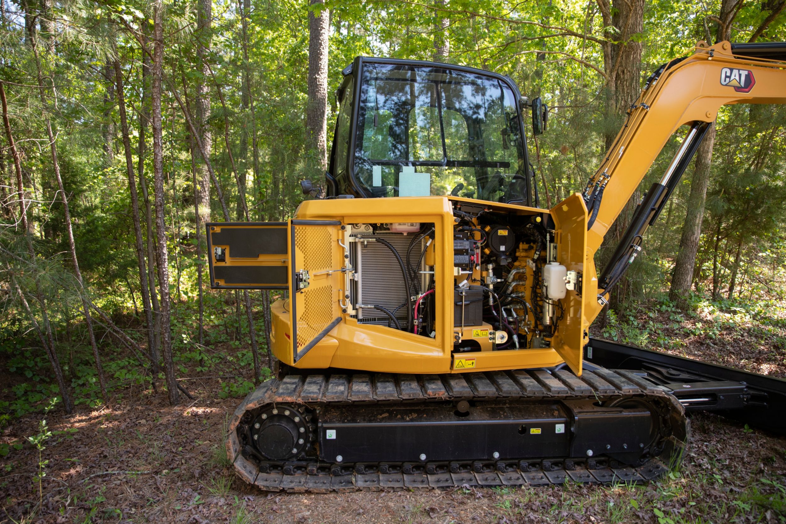 - Maintenance is quick and easy on the Cat mini excavator. Routine check points are easy to access at ground level through the side doors.