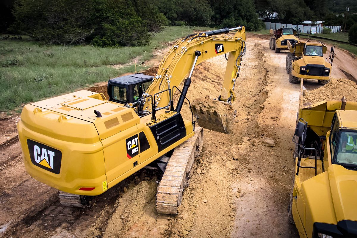 - Sites where excavators work are typically rugged and challenging. That’s why it’s important that the 352 cab help protect the operator as much as possible from fatigue, stresses, sounds, and temperatures of the job.