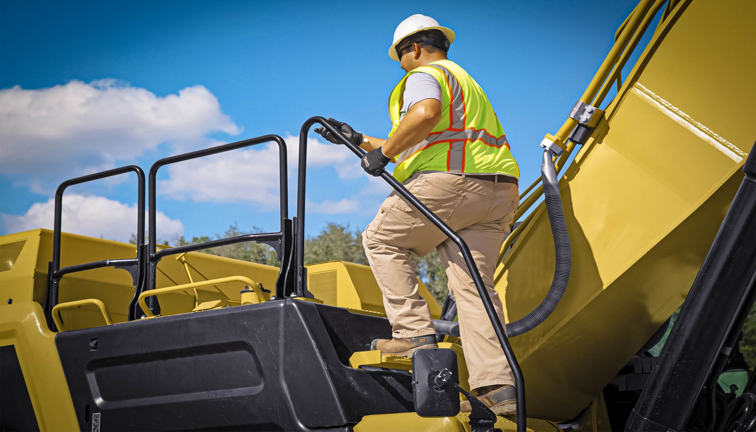 - The right-hand service platform design help provide easy, safe, and quick access to the upper service platform; the service platform steps use serrated steps and an anti-skid punch plate to prevent slipping. The handrails comply with ISO 2867:2011 requirements.