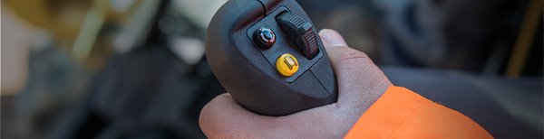 - By pushing one button You can transfer machine steering control from flour mounted levers to seat mounted left joystick.